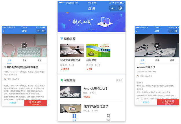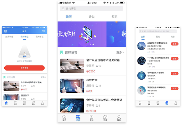标准产品 私有化部署,无需长期开发,部署即可上线运营 定制开发 支持在标准产品上定制开发,打造专属网校 开放源码 网校源码可打包购买,方便机构二次开发 多端网校 免费配套H5网校,独立网校APP,小程序自由选择